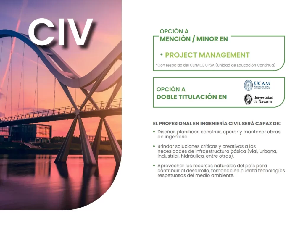 La Ingeniería Civil da soluciones eficientes y creativas en el cálculo de estructuras y construcciones de edificios, puentes, carreteras, obras civiles y de saneamiento básico, tomando decisiones en el ámbito técnico, económico, ambiental y de seguridad.