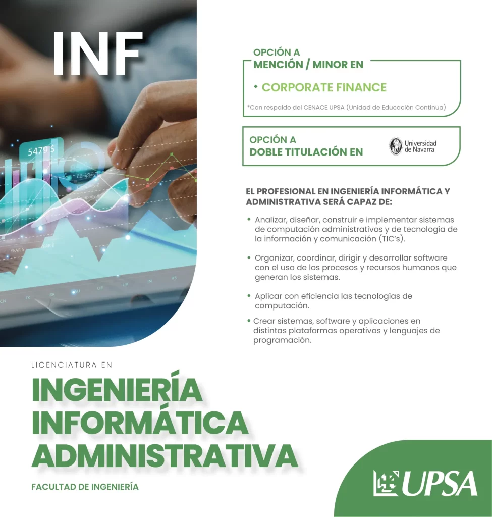 La Ingeniería Informática y Administrativa analiza, diseña, construye, implementa y mantiene sistemas informáticos de gestión y tecnologías de la información y la comunicación (TIC).