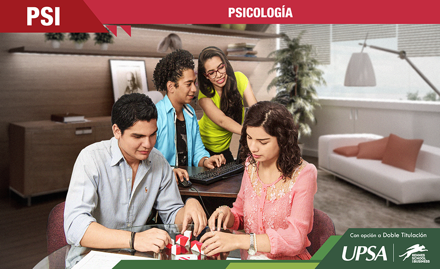 Los estudiantes de esta carrera, que hubieran vencido el octavo semestre, tienen la oportunidad de obtener la doble titulación en la prestigiosa Rennes School of Business de Francia, junto a su grado de licenciatura de la UPSA. La Carrera de Psicología se creó en 1997 en respuesta a las necesidades del mercado laboral en los ámbitos empresarial y clínico, así como a la demanda profesional de parte de los bachilleres de la ciudad, especialmente en las áreas de Psicología del Trabajo y las Organizaciones y en Psicología Clínica. Desde el primer plan de estudios, la carrera está orientada al cumplimiento de los objetivos, misión y visión de la UPSA.{loadposition menu-psicologia} Los estudiantes de esta carrera, que hubieran vencido el octavo semestre, tienen la oportunidad de obtener la doble titulación en la prestigiosa Rennes School of Business de Francia y obtener un Diploma de Maestría reconocido por la Unión Europea, junto a su grado de licenciatura de la UPSA. Como profesional licenciado en Psicología estarás preparado para trabajar en empresas, colegios, consulta privada, sistema de salud, sistema de justicia, proyectos, universidades, equipos deportivos y muchos otros espacios, porque la Psicología te permite adaptar lo que más te gusta a tu trabajo. En las empresas ayudarás a mejorar las organizaciones y a la gente que trabaja en ellas, en el área clínica ayudarás a la gente a sentirse mejor y fomentarás la salud mental, en las escuelas apoyarás a los niños y sus familias, en el sistema de justicia serás indispensable en procesos penales y familiares, y así en los distintos ámbitos de trabajo. Serás capaz de conocer los procesos psicológicos, biológicos, sociales y culturales que afectan la conducta de las personas para evaluarlos y tomar decisiones. PARA MAYOR INFORMACION