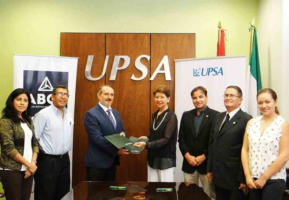 La Universidad Privada de Santa Cruz de la Sierra (UPSA) y la Asociación Boliviana de Gestión de Proyectos (ABGP) firmaron el 28 de agosto un convenio marco para promover la formación en Dirección de Proyectos, mediante la investigación, el desarrollo profesional y la difusión e intercambio de conocimientos y experiencia en este campo.