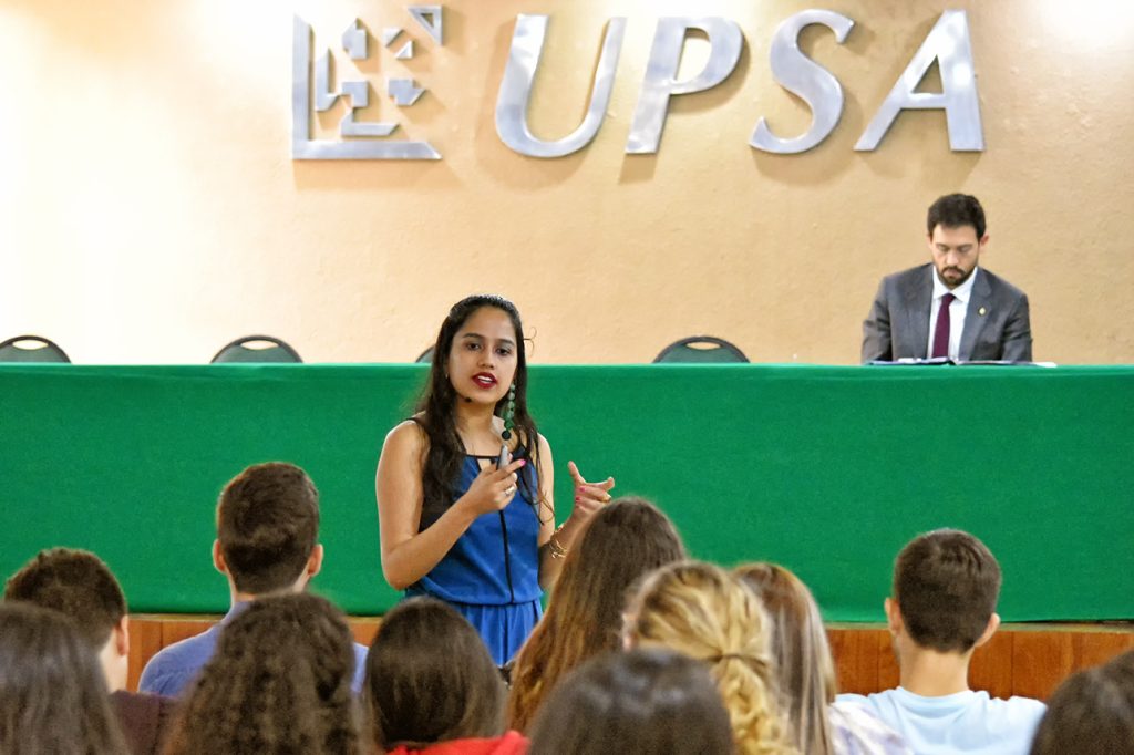 Shinjini Das, fundadora y directora ejecutiva de «The Das Media Group», una agencia de marketing digital, compartió una conferencia interactiva sobre emprendedurismo juvenil con estudiantes de la UPSA el 16 de octubre.