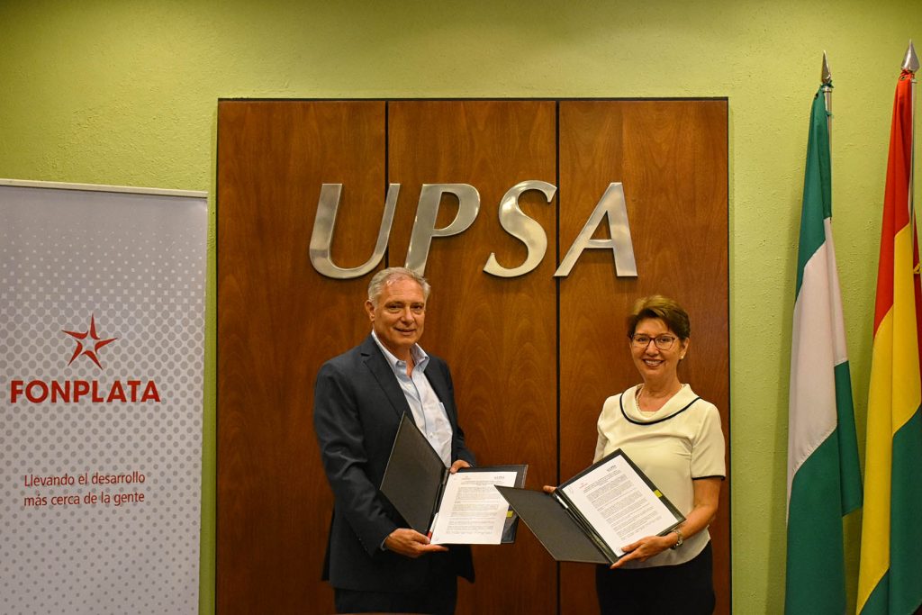 La Universidad Privada de Santa Cruz de la Sierra – UPSA y el Fondo Financiero para el Desarrollo de la Cuenca del Plata (FONPLATA) firmaron un convenio de cooperación para el desarrollo de investigaciones, generación de conocimiento y formación técnica en los campos de interés común que deriven en el aprovechamiento de las ventajas del uso eficiente de los recursos para el desarrollo de la región y sus habitantes.