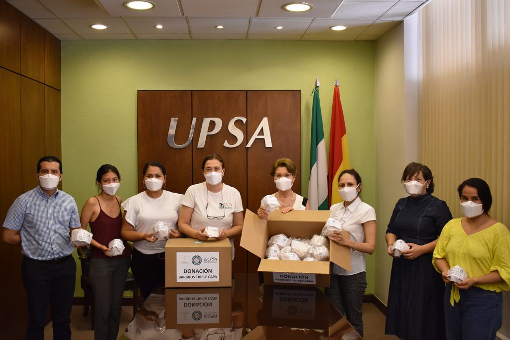 La UPSA recibió 200 barbijos en donación el 9 de octubre de parte de los Salesianos de Don Bosco en Bolivia, cuyas representantes visitaron nuestro Campus.