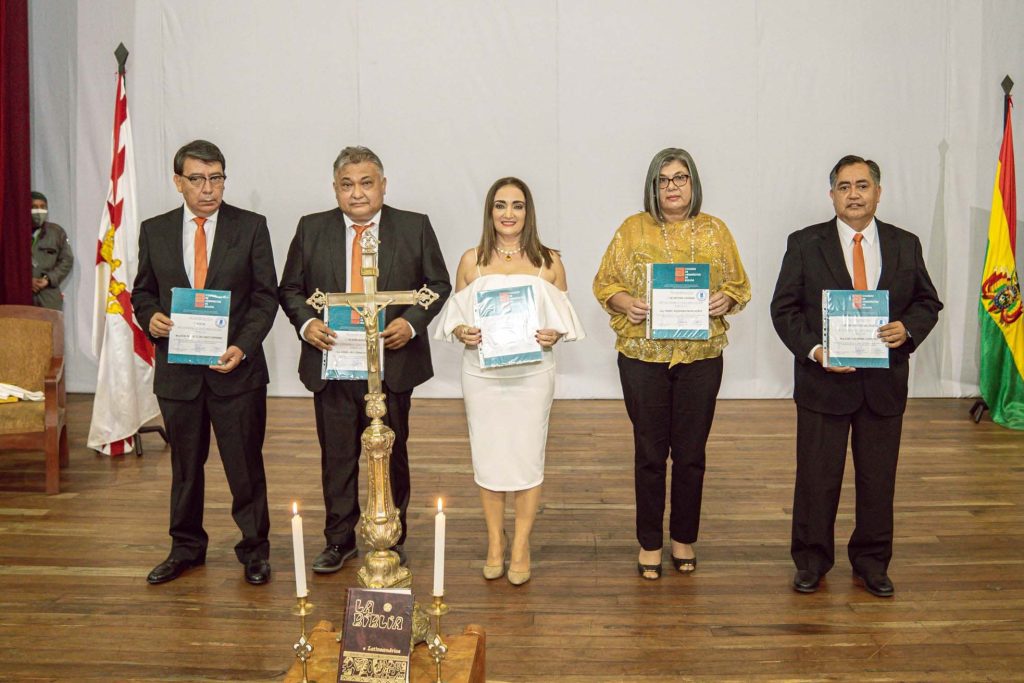 La graduada UPSA de Arquitectura Rim Safar Sakkal (al centro, en la foto) asumió la presidencia del Colegio de Arquitectos de Bolivia por la gestión 2022-2024, durante el XXV Congreso Ordinario de esta entidad, que tuvo lugar en Sucre.