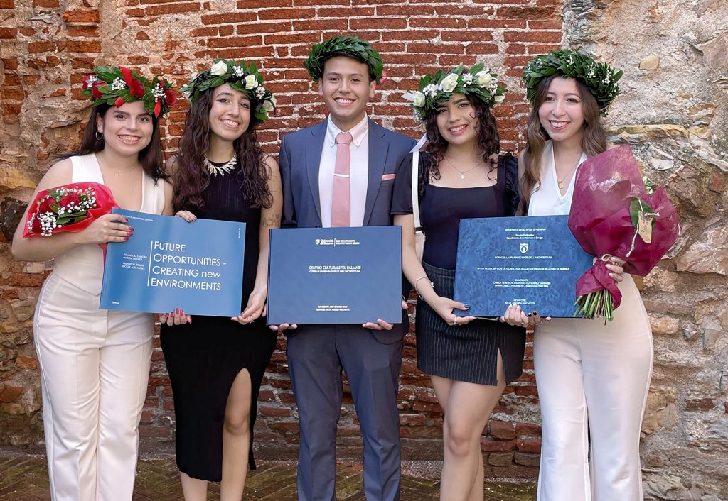Camila Teresa Altamirano Gutiérrez, José Ignacio Daza Sánchez, Alejandra Zamira Lino Nogales, María Camila Paravicini Zambrana, Marcia Andrea Soljancic Zamora y Nicole Alexandra Villarroel Rojas, estudiantes de Arquitectura de la Universidad Privada Santa Cruz de la Sierra, obtuvieron en julio de 2023 su graduación en la Universidad de Génova (Italia) gracias al programa de Doble Titulación de la UPSA.