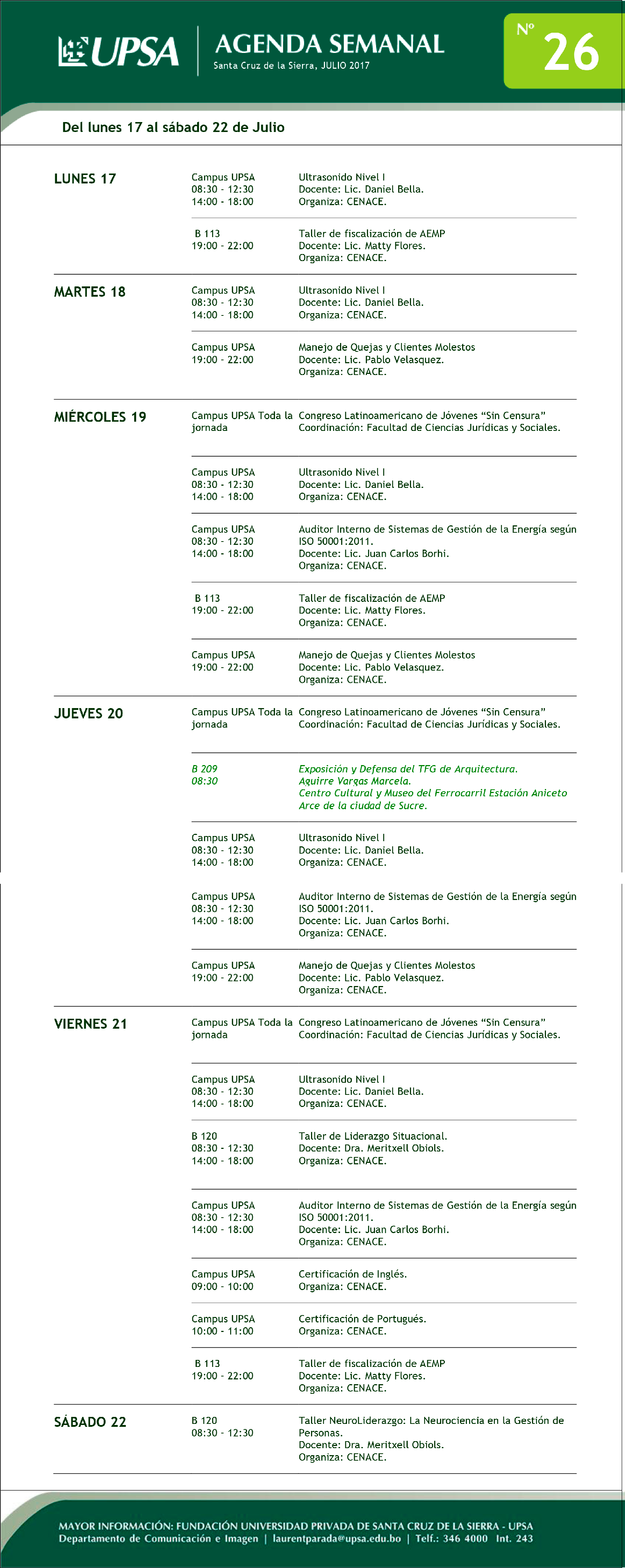 AGENDA SEMANAL #26 – 2017