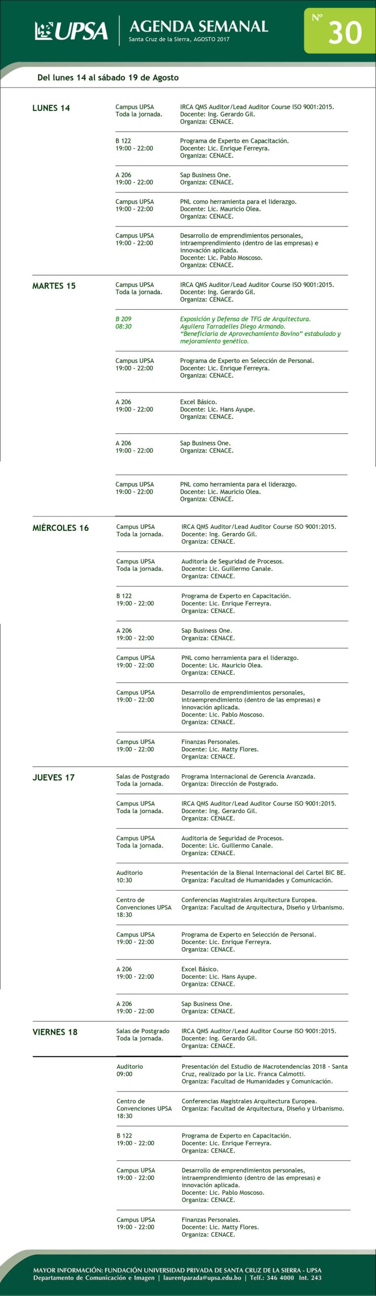 AGENDA SEMANAL #30 – 2017