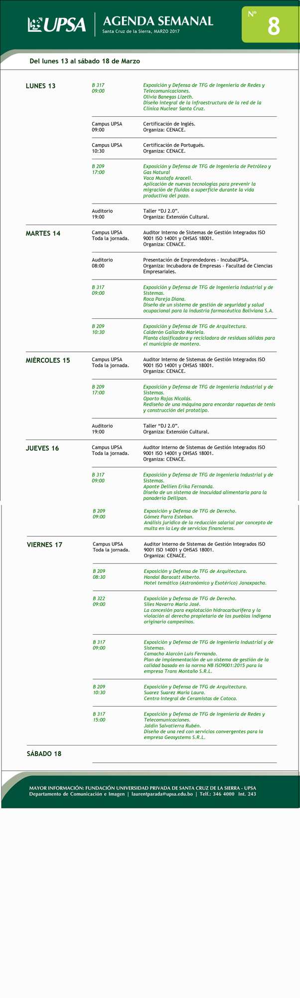 AGENDA SEMANAL #08 – 2017