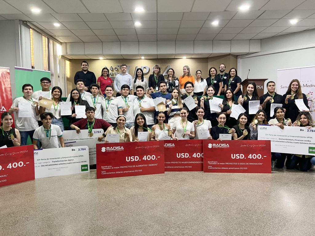 Creativas ideas de negocios presentadas por los estudiantes de las distintas facultades de la Universidad Privada de Santa Cruz de la Sierra – UPSA, fueron premiadas durante la 23° Feria de Innovación y Emprendimiento, una actividad organizada por la Facultad de Ciencias Empresariales de la Universidad, con el apoyo de Madisa, Banco Nacional de Bolivia – BNB, y la Fundación Samuel Doria Medina.