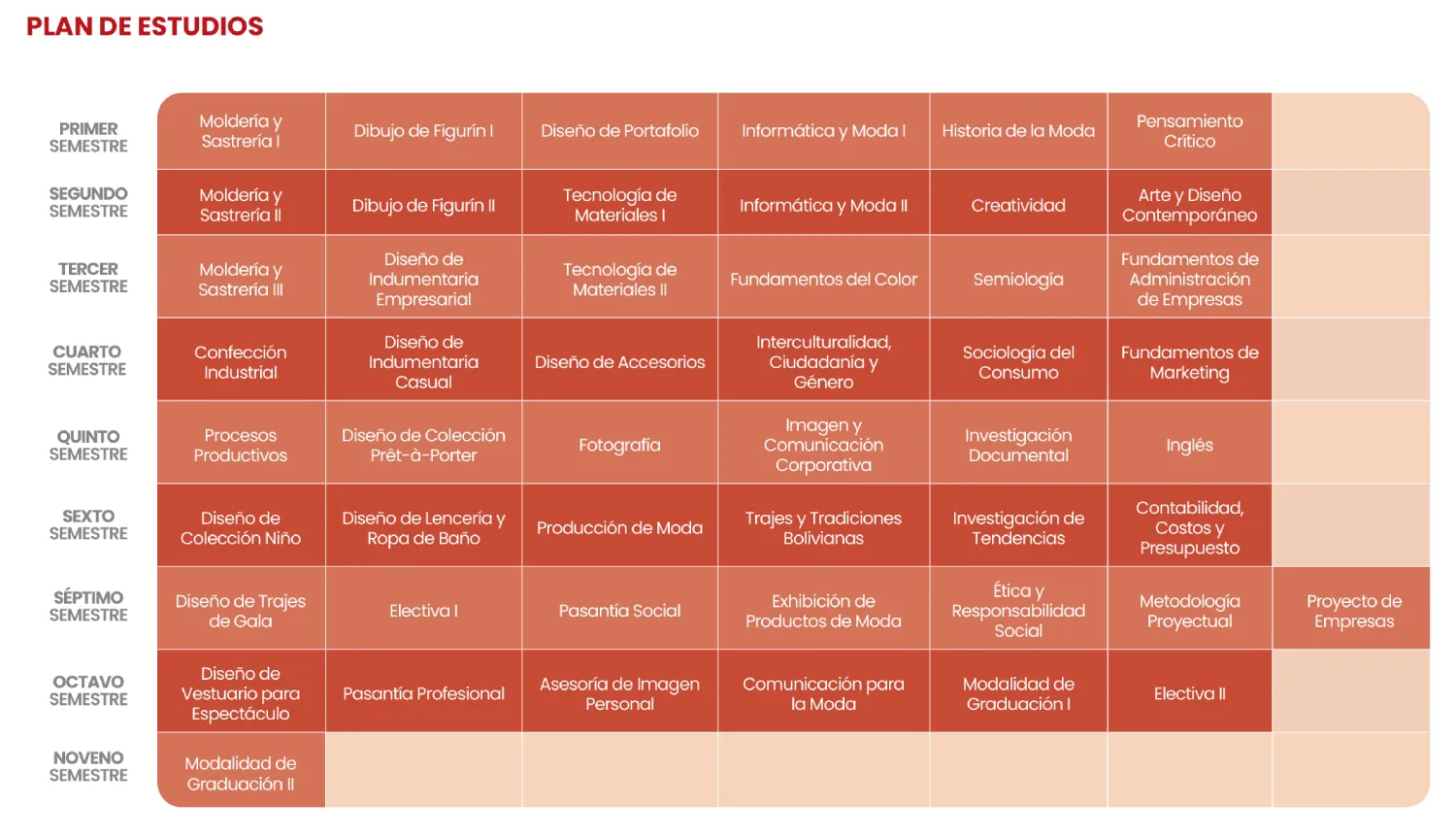 Los profesionales de esta área poseen conocimientos sólidos que abarcan desde los procesos productivos, el diseño de joyería, carteras y zapatos, el visual merchandising, el branding personal, la fotografía, comunicación para la moda, hasta la comercialización, contabilidad, costos, presupuestos y el manejo de programas tecnológicos para la producción industrial.
